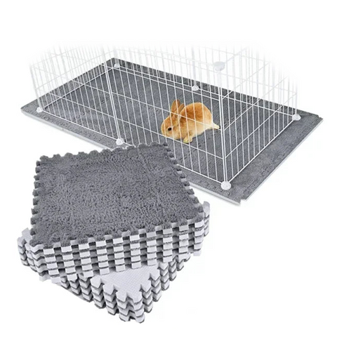 Chaque pièce du tapis est recouverte d’une matière moelleuse de 1 cm d’épaisseur, qui offre au lapin une sensation agréable sous les pattes. Ce confort tactile limite les points de pression, améliore la qualité du repos et évite les irritations cutanées liées aux sols durs ou froids.