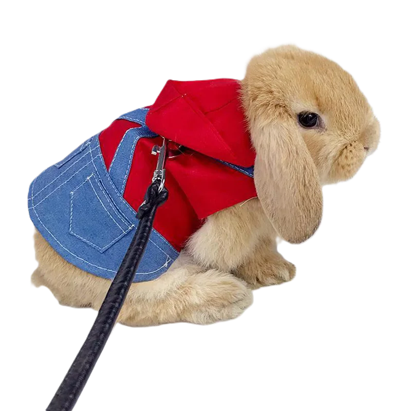 🐰 Le Manteau Pour Lapin Nain est l’accessoire parfait pour allier style urbain et sécurité lors des promenades. Conçu en denim, ce vêtement intègre un harnais de marche discret et une laisse à boucle, pour que votre lapin puisse explorer en toute liberté sans compromis sur le confort.