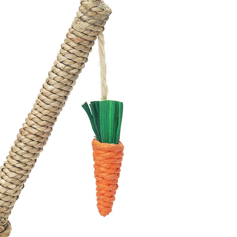 🌿 Jouet pour Petit Lapin – Arbre à Carottes à Mâcher en Rotin Naturel